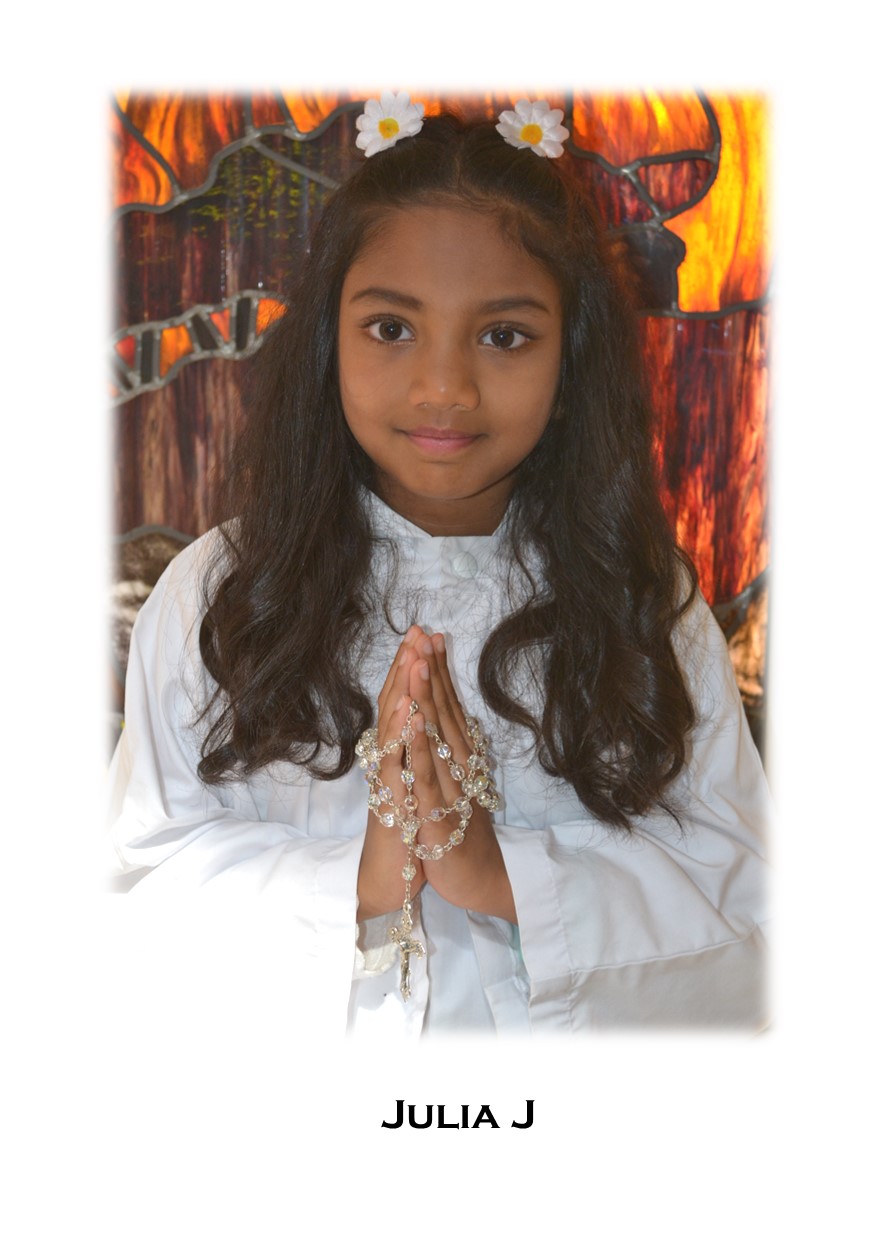 Photos of several of the First Communicants who received their First Holy Communion at all of the weekend Sunday Masses (June 21/22, 2025) on the Solemnity of the Body and Blood of Christ (Corpus Christi) in our church.